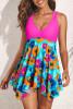 Floral Pleated Fit and Flare Boho Bikinis Tops LC46250-2