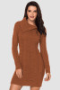 Orange Women's Winter Casual Long Sleeve Solid Color Turtleneck Diagonal Button Bodycon Cable Knit Sweater Dress LC27864-14