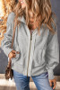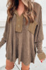 Buttoned V Neck Drawstring Knit Hoodie LC25314909-16