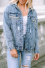 Rhinestone Fringed Pocket Buttoned Hooded Denim Jacket LC788314-4