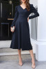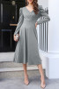 Plus Size Ruched Puff Sleeves Fit Flare Midi Dress PL61578-3