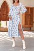 Floral V Neck Wrap Lace up Bubble Sleeve Dress LC6117237-7