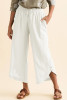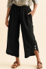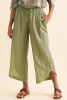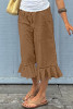 EVALESS Linen Pants Women Summer Casual Wide Leg Drawstring Elastic Waist Ruffle Hem Capri Pants with Pockets LC7714224-P2