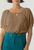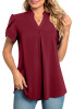 EVALESS Womens Dressy Casual Tops Trendy Business Work Blouses Pleated Keyhole Short Sleeve Summer Shirts LC25135429-P1