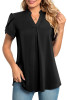 EVALESS Women's Dressy Casual Business Work Chiffon Blouses Tops Summer V Neck Cute Loose Petal Short Sleeve LC25126766-P1010