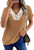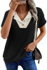 EVALESS Spring Summer Tops for Women Casual Short Sleeve T Shirts V Neck Henley Shirts Patchwork Button Up Knit Pullover Tops LC25134991-P509