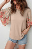 EVALESS 3/4 Length Sleeve Womens Tops Dressy Casual Blouses Floral Print Crewneck Patchwork Shirts 2026 Spring Outfits LC25230007-P1