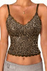 EVALESS Women Sexy Sequin V Neck Tank Tops Summer Adjustable Spaghetti Straps Going Out Sleeveless Cami ShirtsWhite Scalloped Trim Spaghetti Straps Sequin Tank Top LC25613656-P1