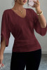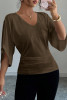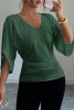 EVALESS Womens Tops Spring Summer Dressy Casual V Neck 3/4 Batwing Sleeve Ruched T-Shirt Business Work Outfits Blouses LC25135755-P1