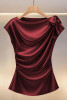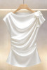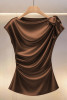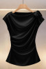 EVALESS Satin Blouses for Women Dressy Casual Silk V Neck Cap Sleeve Pleated Shirts Business Work Tops LC25613643-P1
