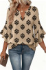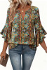 EVALESS Womens Tops Dressy Casual Ruffle 3/4 Length Sleeve Henley V Neck Chiffon Blouses Summer Boho Work Business Outfits LC25135598-P10220