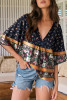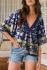 EVALESS Boho Summer Tops for Women Trendy 3/4 Length Sleeve Womens Tops Floral Print V Neck Blouses Spring 2026 Shirts LC25135428-P720