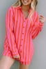 Pink Oversize Striped Print Smocked Cuffs Pocketed Shirt LC2552685-10