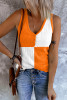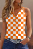 Orange and White Plaid Graphic V Neck Casual Tank Tops LC25611155-P14