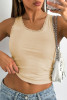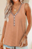 Light French Beige Buttoned Contrast V Neck Textured Tank Top LC25611875-P4016